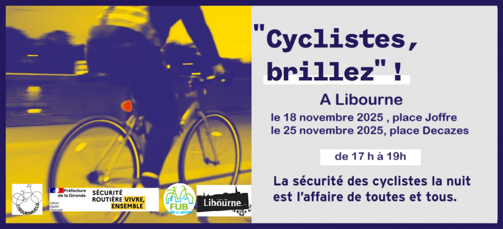 Face au constat qu’un usager du vélo sur 2 n’avait aucun éclairage, Libournavelo souhaite reconduire ces opérations de sensibilisation à la sécurité routière, après le passage à l’heure d’hiver, courant novembre 2026.